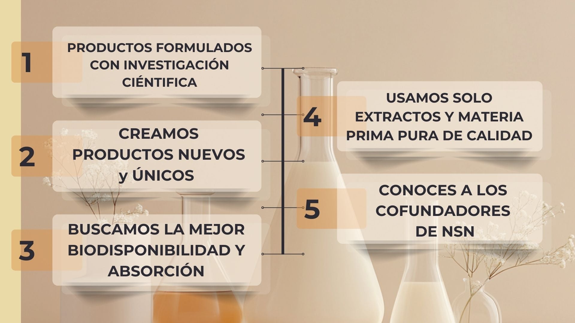 Nos apasiona el descubrimiento, la experimentación y la vanguardia, desde el laboratorio con Friné, las pruebas de excelencia en calidad con Gerardo y la exploración de mercados y competencias en otros países con Timo, el equipo nsn tiene la misión de desarrollas suplementos innovadores que ayuden al bienestar de toda la familia