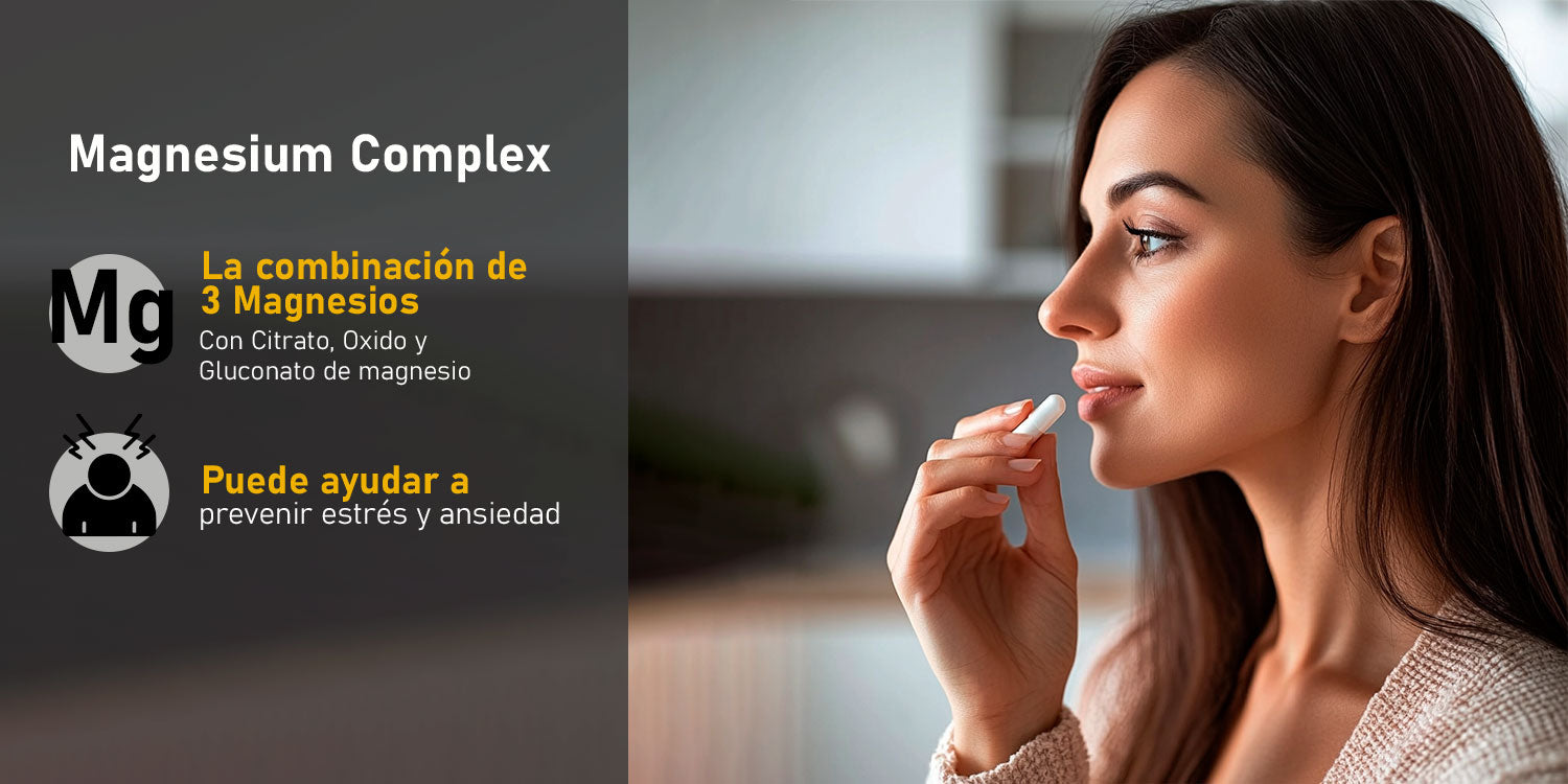 Con Citrato, Oxido y Gluconato de magnesio, la combinación de 3 magnesios en una cápsula goza de los beneficios que otorga cada tipo de magnesio.